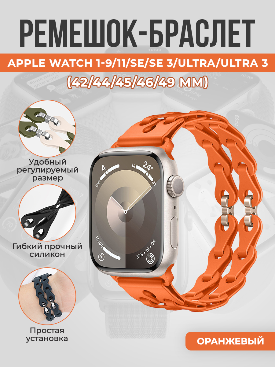 Модный силиконовый ремешок-браслет для Apple Watch 1-9/10-11/SE1-3/ULTRA1-3(42/44/45/46/49 мм), оранжевый