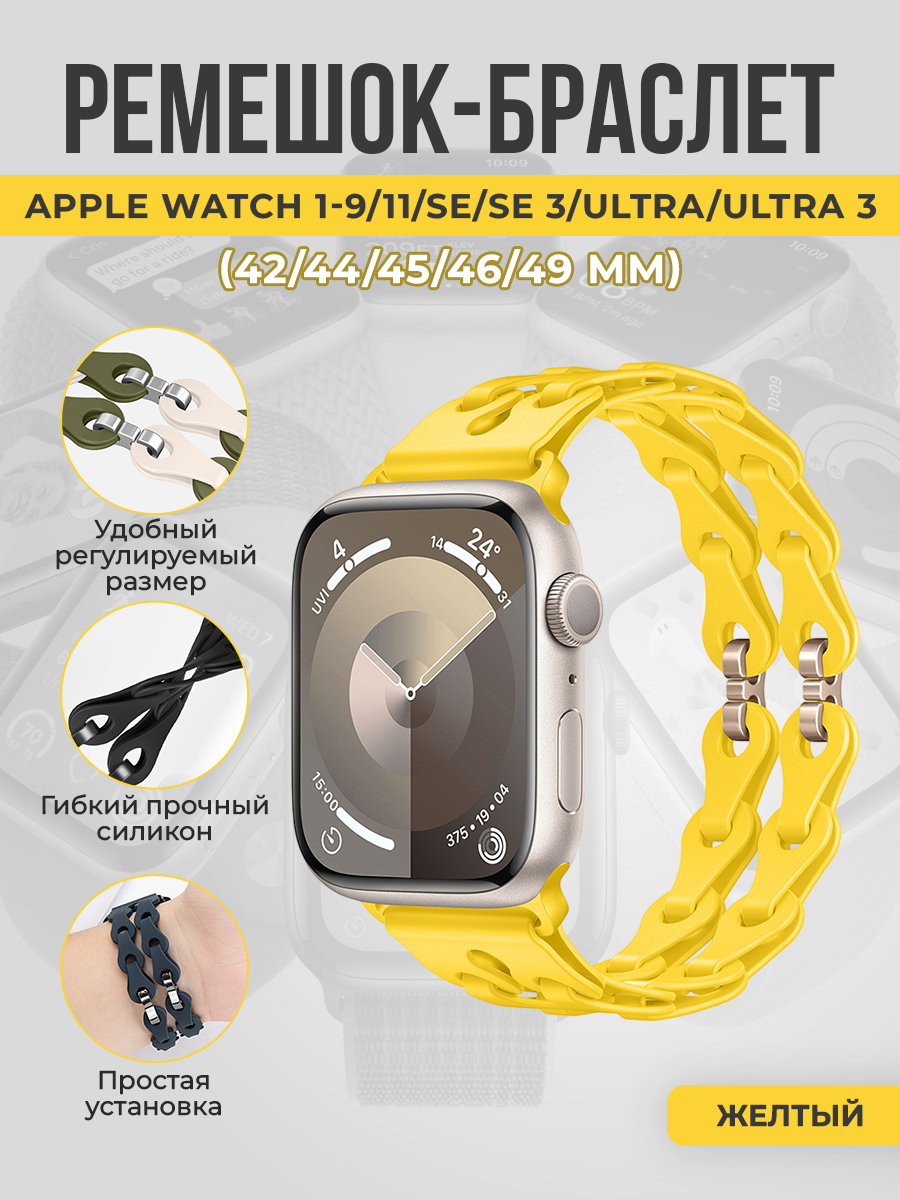 Модный силиконовый ремешок-браслет для Apple Watch 1-9/10-11/SE1-3/ULTRA1-3(42/44/45/46/49 мм), желтый