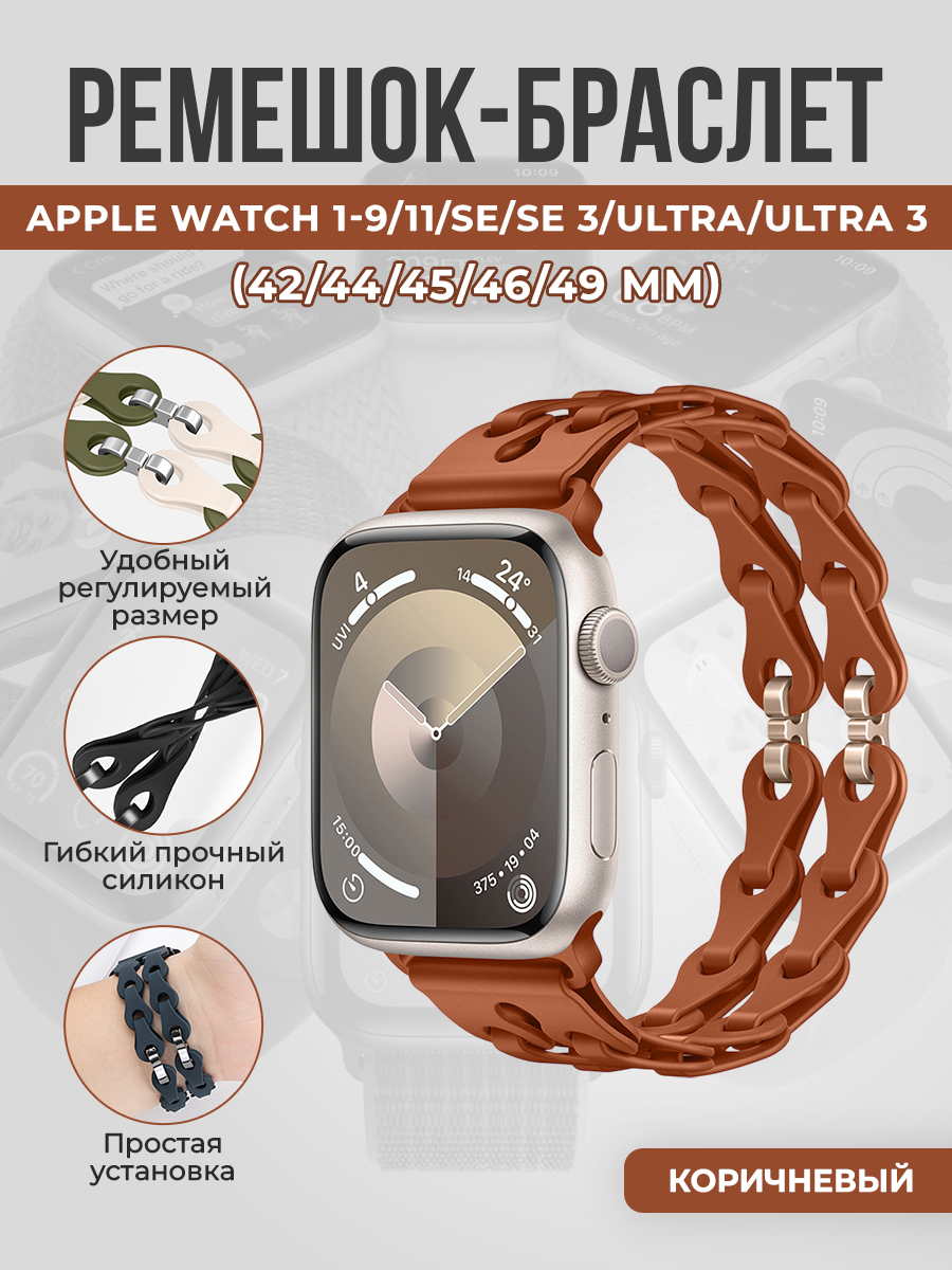Модный силиконовый ремешок-браслет для Apple Watch 1-9/10-11/SE1-3/ULTRA1-3(42/44/45/46/49 мм), коричневый