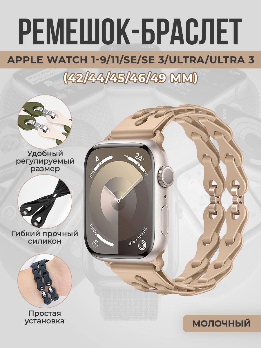 Модный силиконовый ремешок-браслет для Apple Watch 1-9/10-11/SE1-3/ULTRA1-3(42/44/45/46/49 мм), молочный
