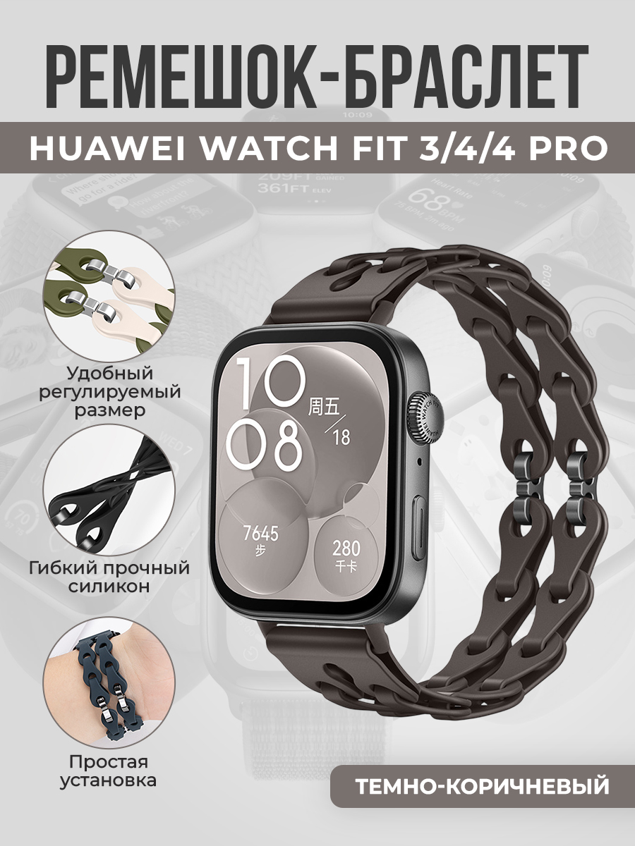 Модный силиконовый ремешок-браслет для Huawei Watch Fit 3/4/4 Pro, темно-коричневый