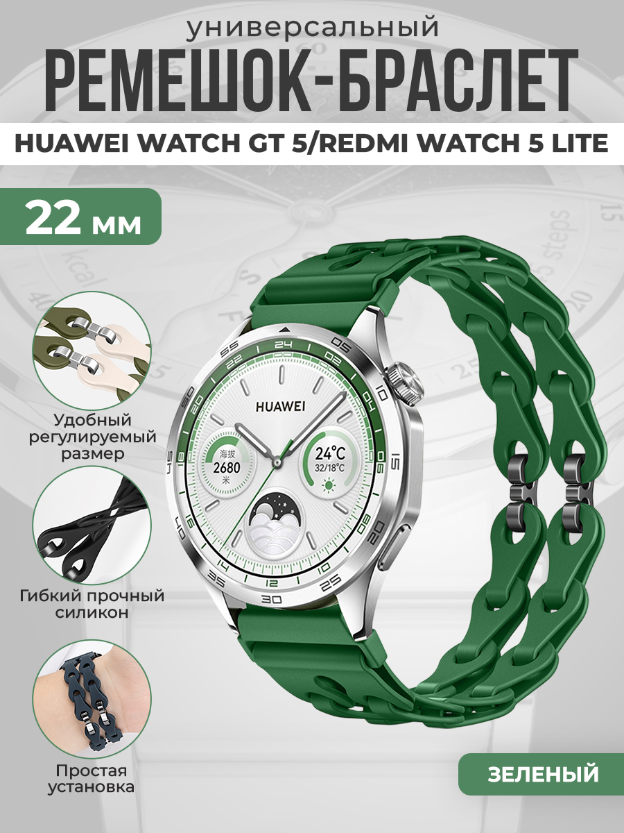 Универсальный силиконовый ремешок-браслет для Huawei Watch GT 5/Redmi Watch 5 Lite, 22 мм, зеленый