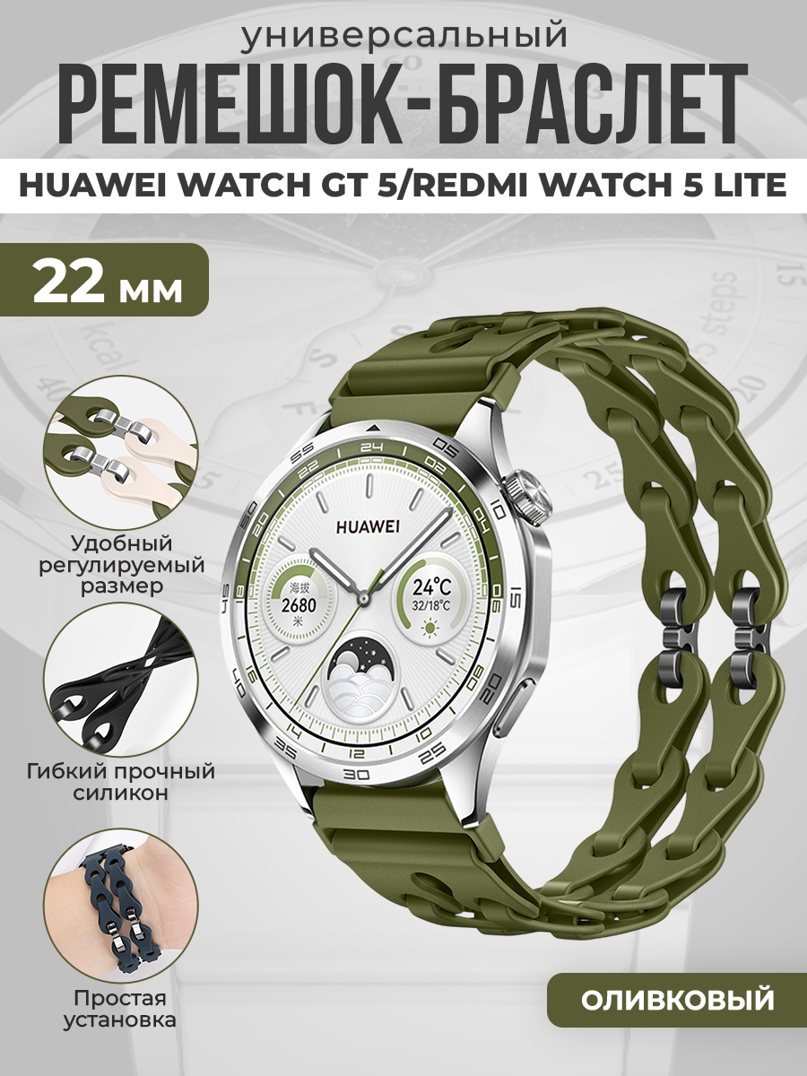 Универсальный силиконовый ремешок-браслет для Huawei Watch GT 5/Redmi Watch 5 Lite, 22 мм, оливковый