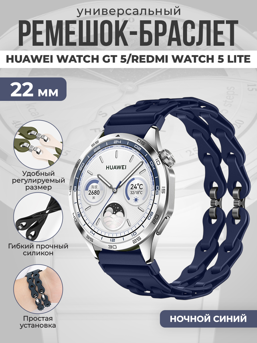 Универсальный силиконовый ремешок-браслет для Huawei Watch GT 5/Redmi Watch 5 Lite, 22 мм, ночной синий