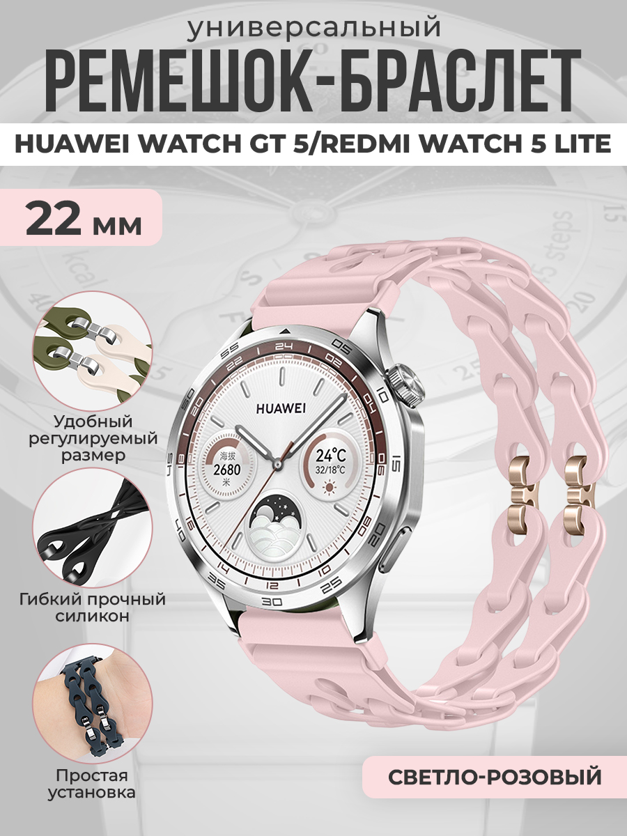 Универсальный силиконовый ремешок-браслет для Huawei Watch GT 5/Redmi Watch 5 Lite, 22 мм, светло-розовый