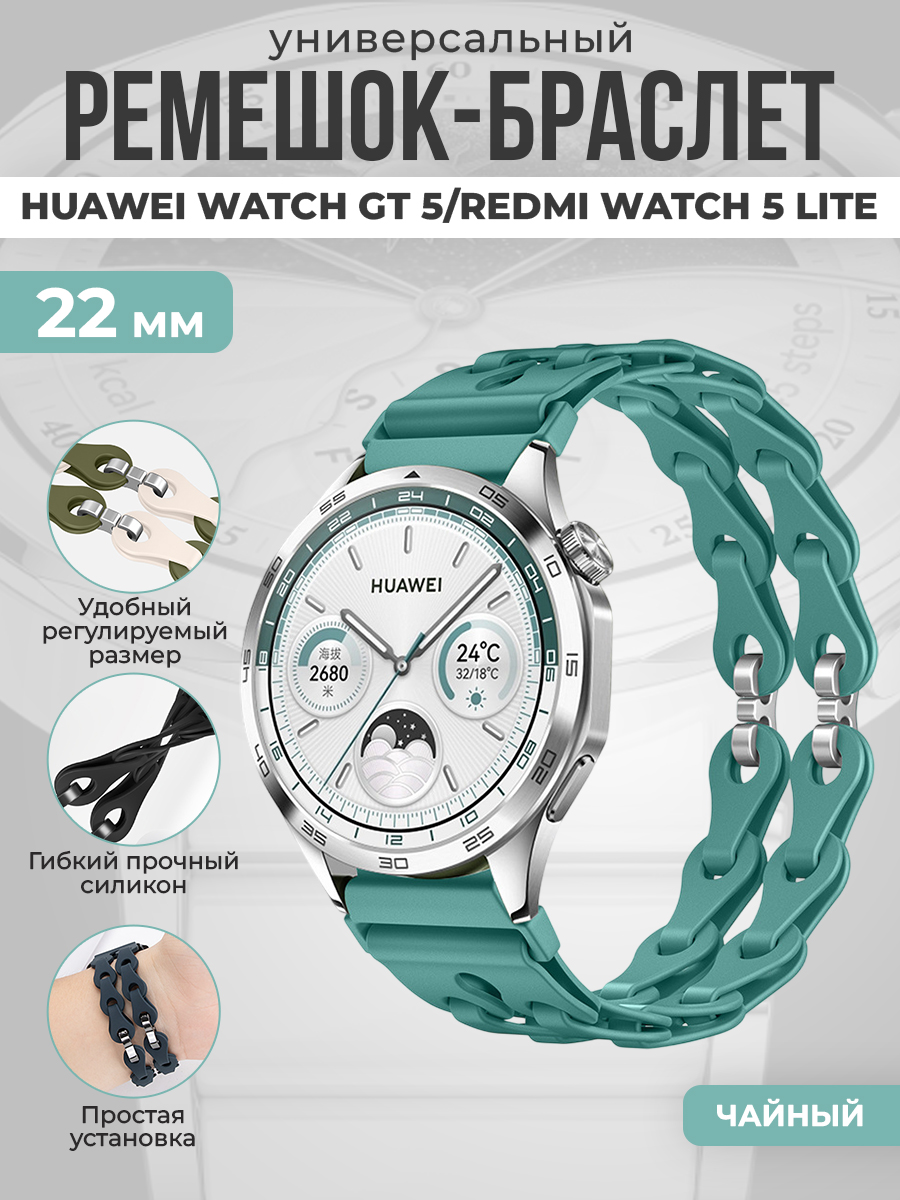 Универсальный силиконовый ремешок-браслет для Huawei Watch GT 5/Redmi Watch 5 Lite, 22 мм — идеальное решение для активного дня и стильного образа. Этот ремешок обеспечивает надежную посадку на запястье и максимальный комфорт на протяжении долгих часов носки. Гибкий силикон приятен на ощупь, не вызывает раздражения и легко чистится после занятий спортом или походов в душ. Универсальные ремешок 22 мм подходит к большинству моделей и позволяют быстро сменить стиль без специальных инструментов.