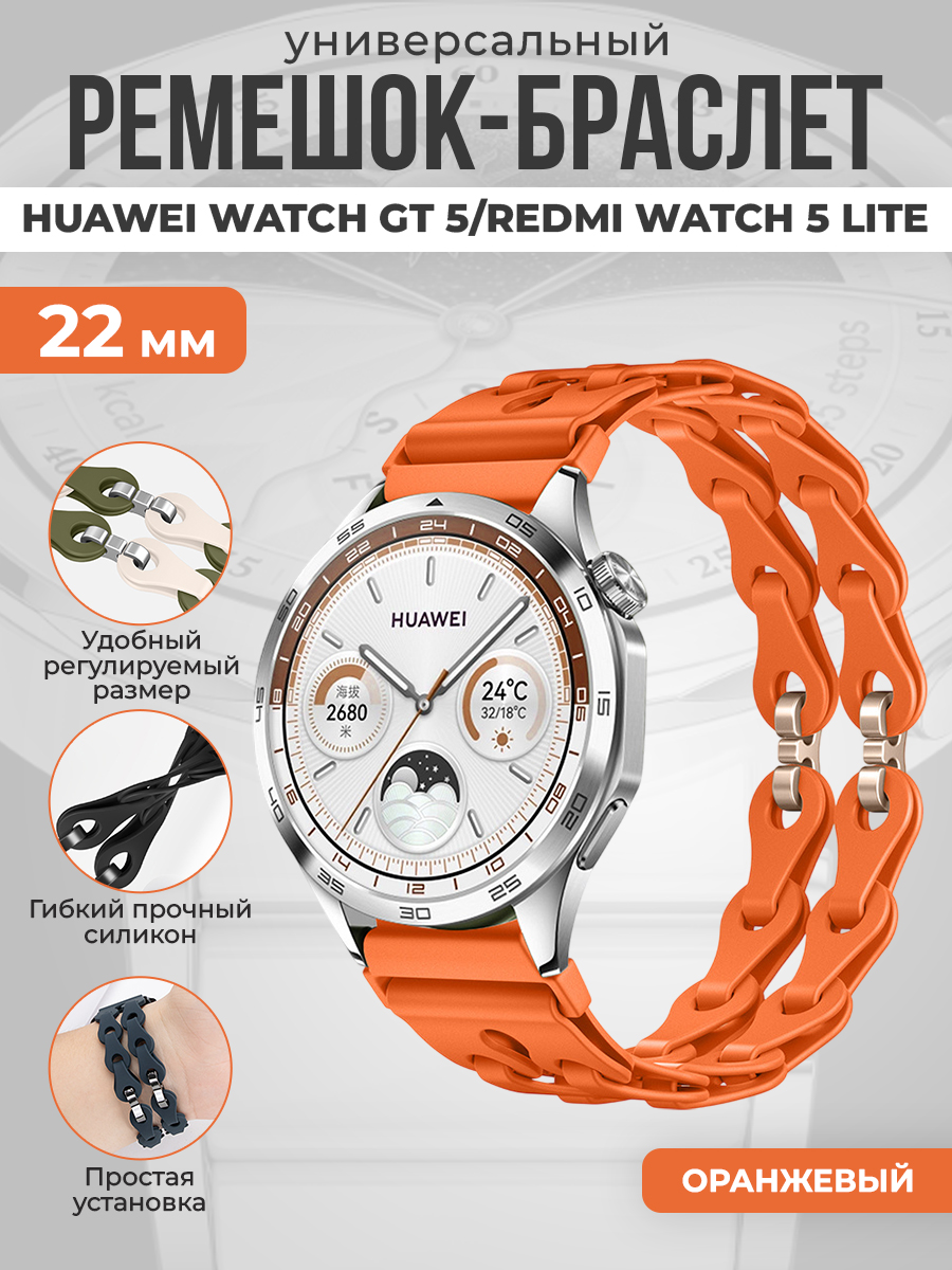 Универсальный силиконовый ремешок-браслет для Huawei Watch GT 5/Redmi Watch 5 Lite, 22 мм, оранжевый