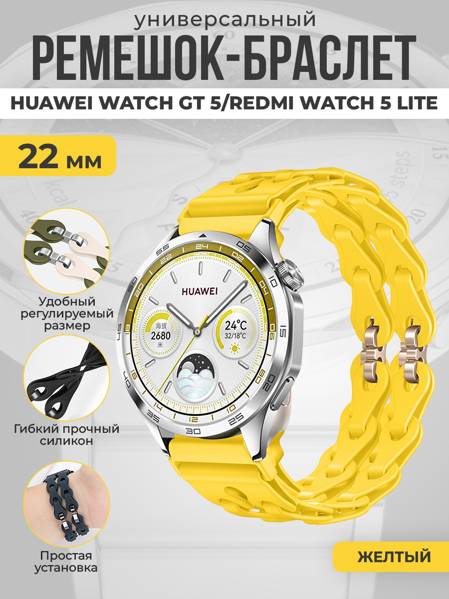 Универсальный силиконовый ремешок-браслет для Huawei Watch GT 5/Redmi Watch 5 Lite, 22 мм, желтый