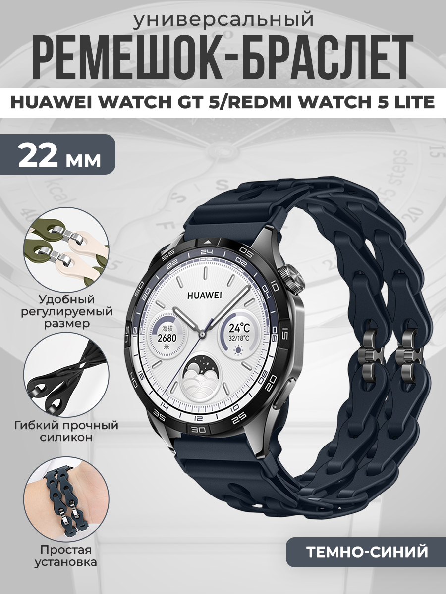 Универсальный силиконовый ремешок-браслет для Huawei Watch GT 5/Redmi Watch 5 Lite, 22 мм — идеальное решение для активного дня и стильного образа. Этот ремешок обеспечивает надежную посадку на запястье и максимальный комфорт на протяжении долгих часов носки. Гибкий силикон приятен на ощупь, не вызывает раздражения и легко чистится после занятий спортом или походов в душ. Универсальные ремешок 22 мм подходит к большинству моделей и позволяют быстро сменить стиль без специальных инструментов.