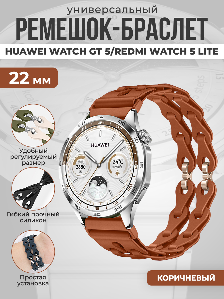 Универсальный силиконовый ремешок-браслет для Huawei Watch GT 5/Redmi Watch 5 Lite, 22 мм, коричневый