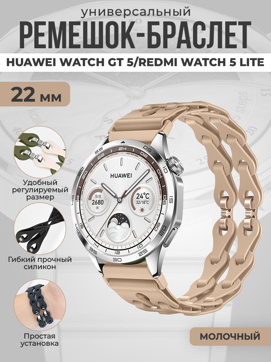 Универсальный силиконовый ремешок-браслет для Huawei Watch GT 5/Redmi Watch 5 Lite, 22 мм, молочный