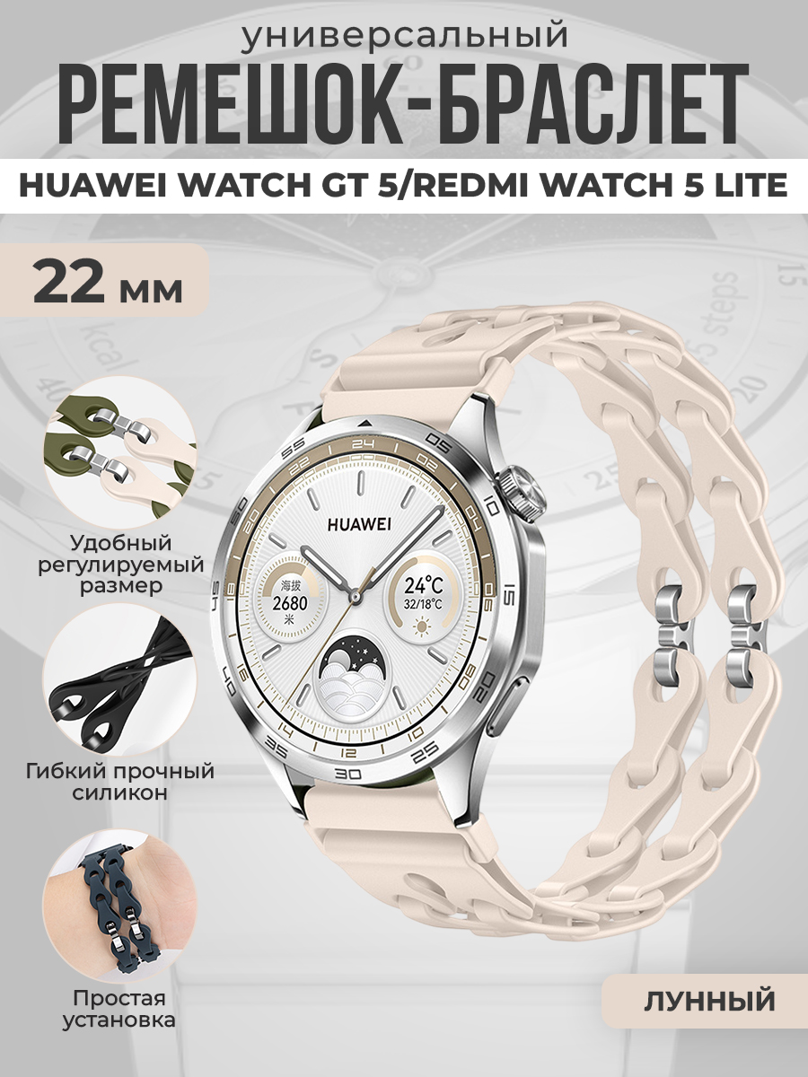 Универсальный силиконовый ремешок-браслет для Huawei Watch GT 5/Redmi Watch 5 Lite, 22 мм, лунный