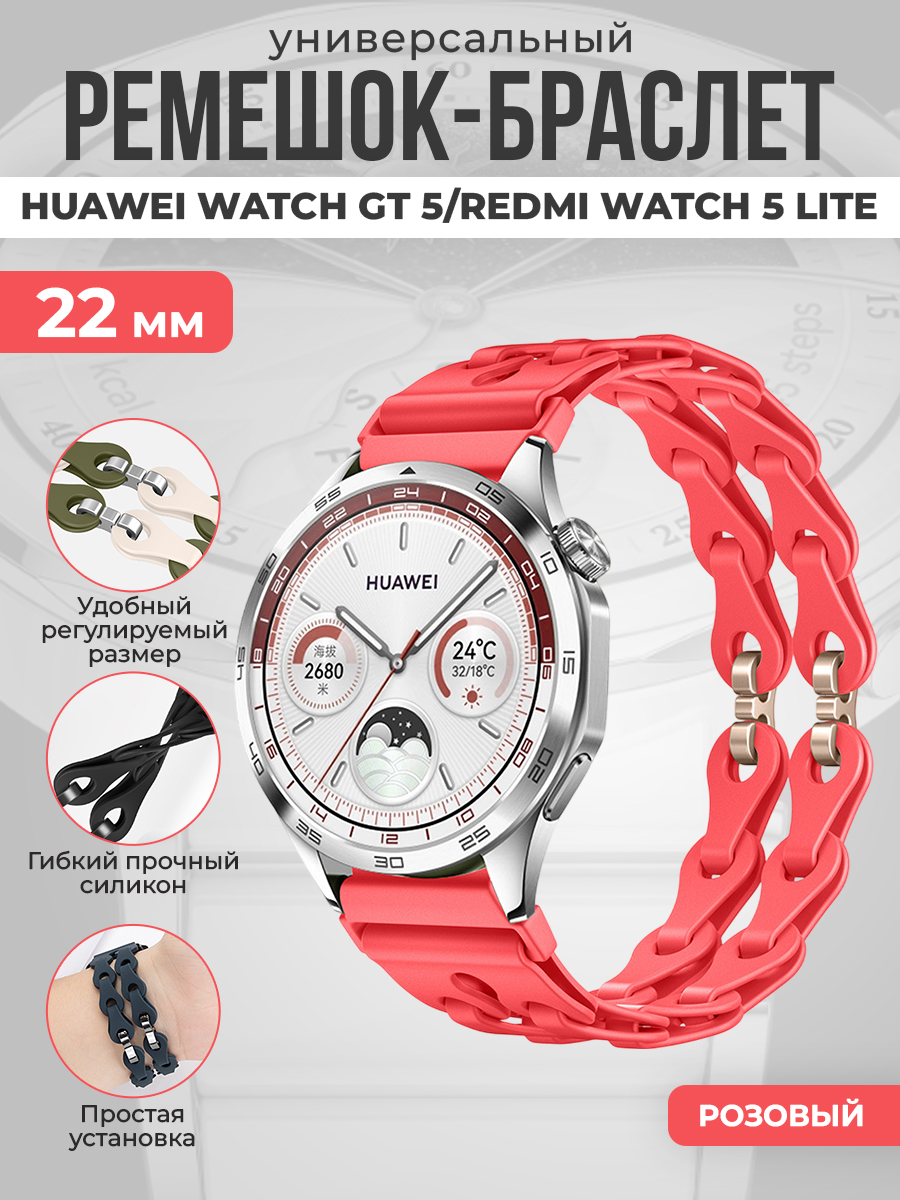 Универсальный силиконовый ремешок-браслет для Huawei Watch GT 5/Redmi Watch 5 Lite, 22 мм, розовый