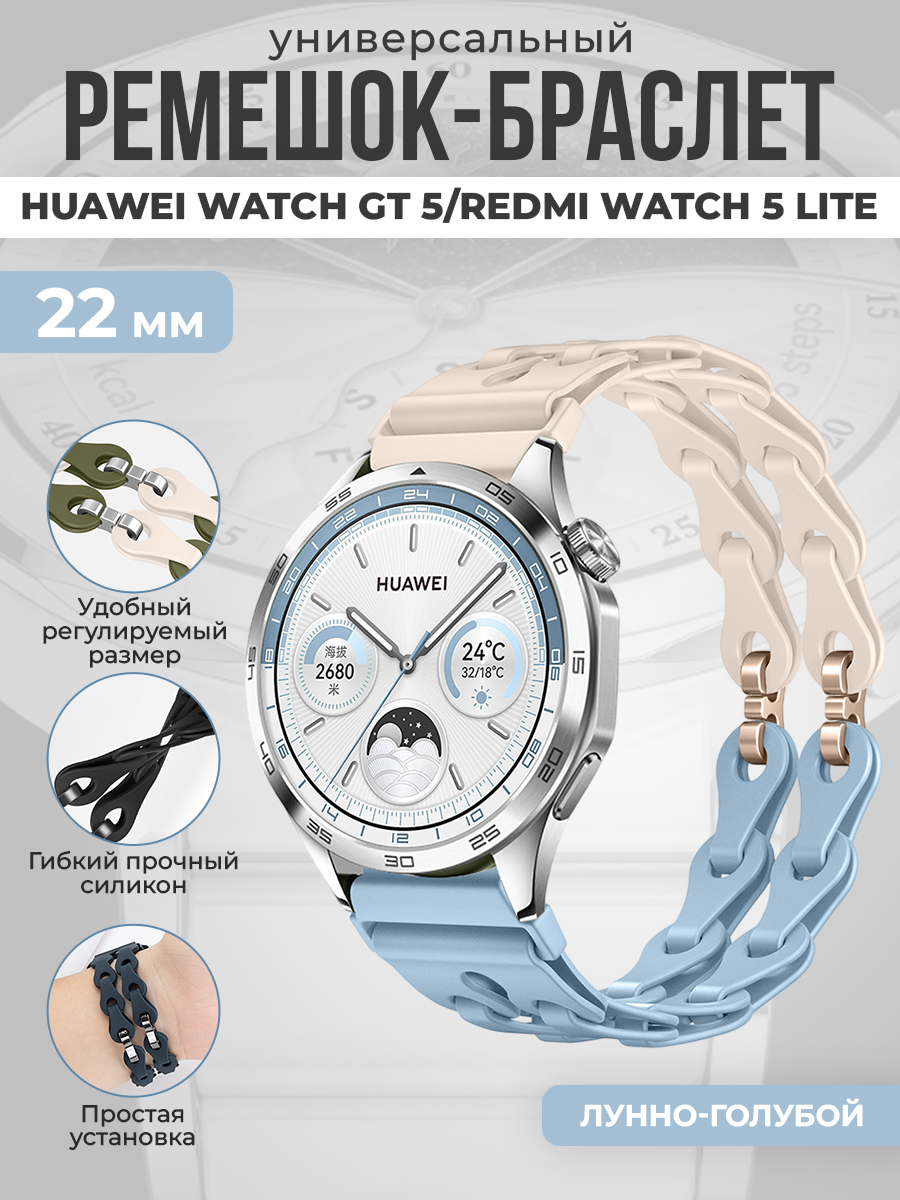 Ремешок для Huawei Watch GT 5 отличается прочностью и стойкостью к изнашиванию, хорошо держит форму даже при интенсивной активности. Huawei Watch GT 5 браслет можно подобрать под любой наряд: спортивный, повседневный или вечерний, благодаря лаконичному дизайну и нейтральной палитре. Ремешок-цепочка для Redmi Watch 5 Lite представляет альтернативу классическим вариантам: он добавляет небольшую изюминку в образ и при этом сохраняет удобство использования и безопасность крепления. Хуавей Вотч GT 5 ремешок сочетает функциональность и стиль: он не мешает движению, легко ставится и снимается, а материал устойчив к влаге и быстро восстанавливает форму после деформаций.