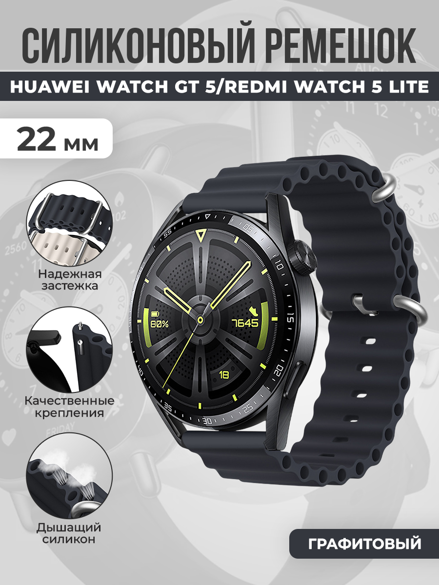 Силиконовый ремешок океанская цепь для Huawei Watch GT 5/Redmi Watch 5 Lite, 22 мм, графитовый