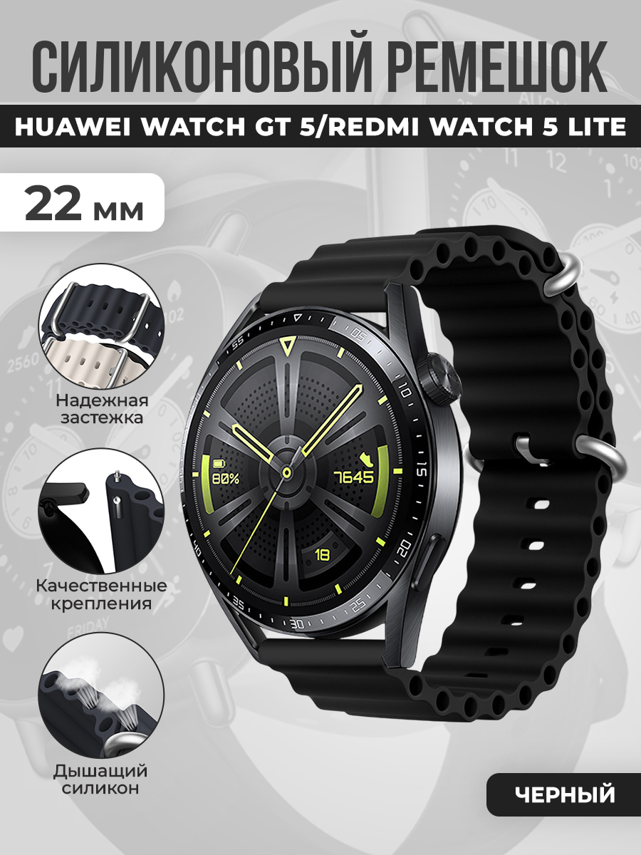 Силиконовый ремешок океанская цепь для Huawei Watch GT 5/Redmi Watch 5 Lite, 22 мм, черный