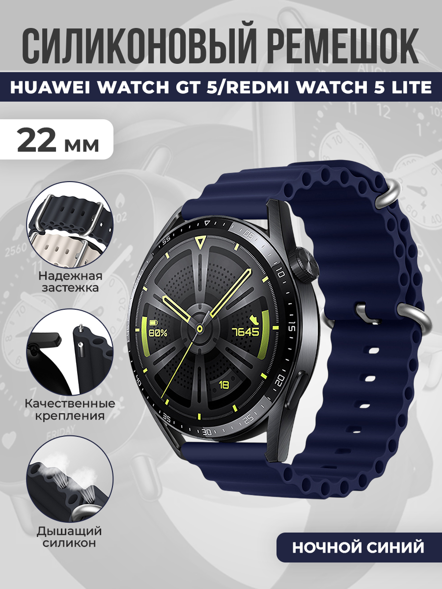 Силиконовый ремешок океанская цепь для Huawei Watch GT 5/Redmi Watch 5 Lite, 22 мм, ночной синий