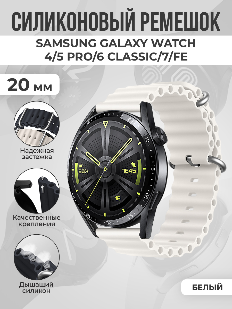 Силиконовый ремешок океанская цепь для Samsung Galaxy Watch 4/5 Pro/6 Classic/7/FE, 20мм, белый