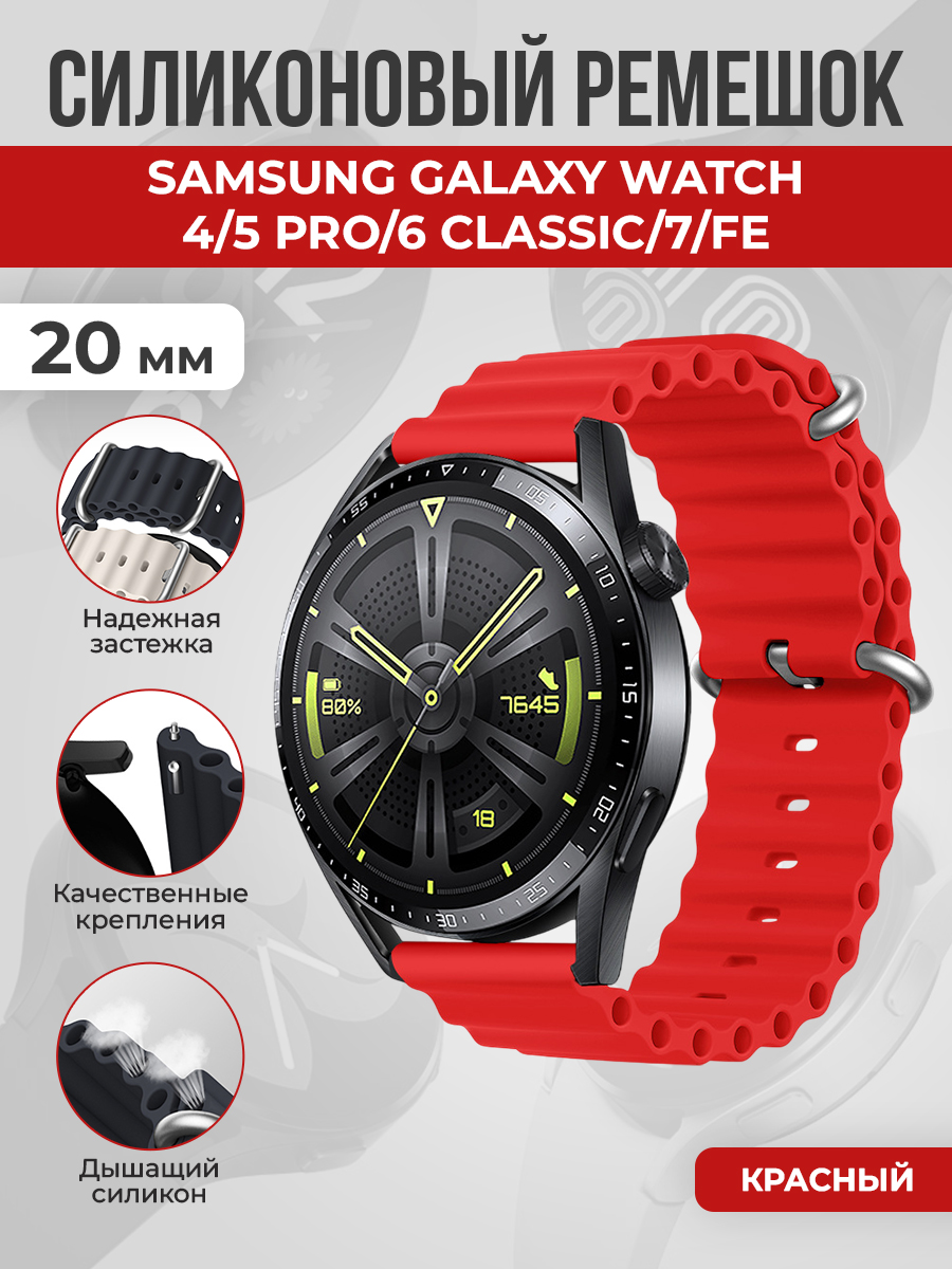 Силиконовый ремешок океанская цепь для Samsung Galaxy Watch 4/5 Pro/6 Classic/7/FE, 20мм, красный