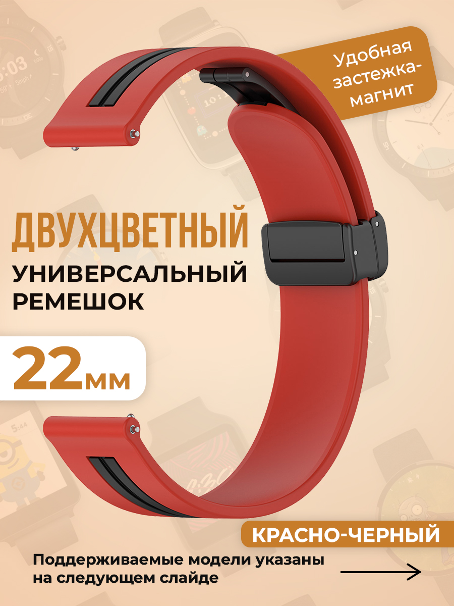 Двухцветный универсальный силиконовый ремешок 22 мм, красно-черный