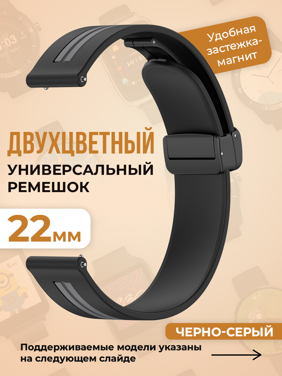 Двухцветный универсальный силиконовый ремешок 22 мм, черно-серый