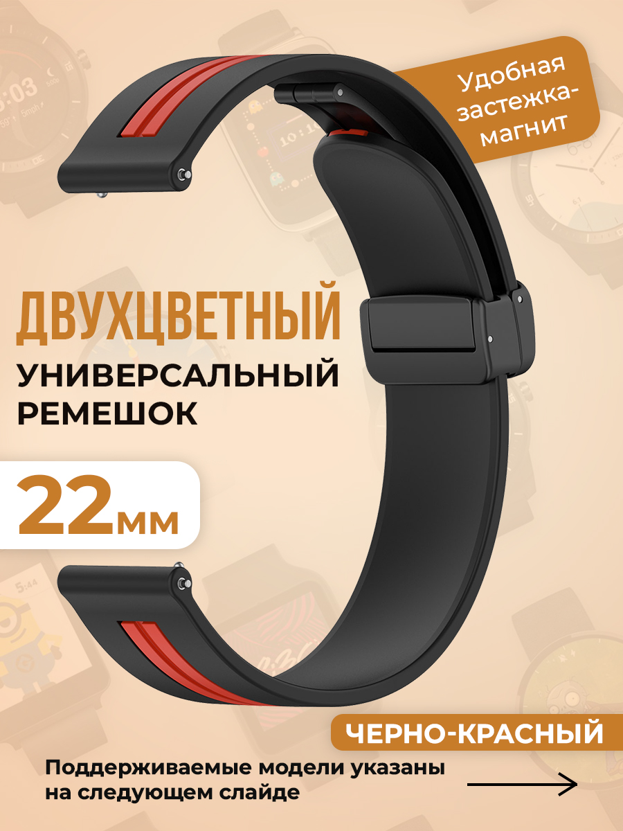 Двухцветный универсальный силиконовый ремешок 22 мм, черно-красный