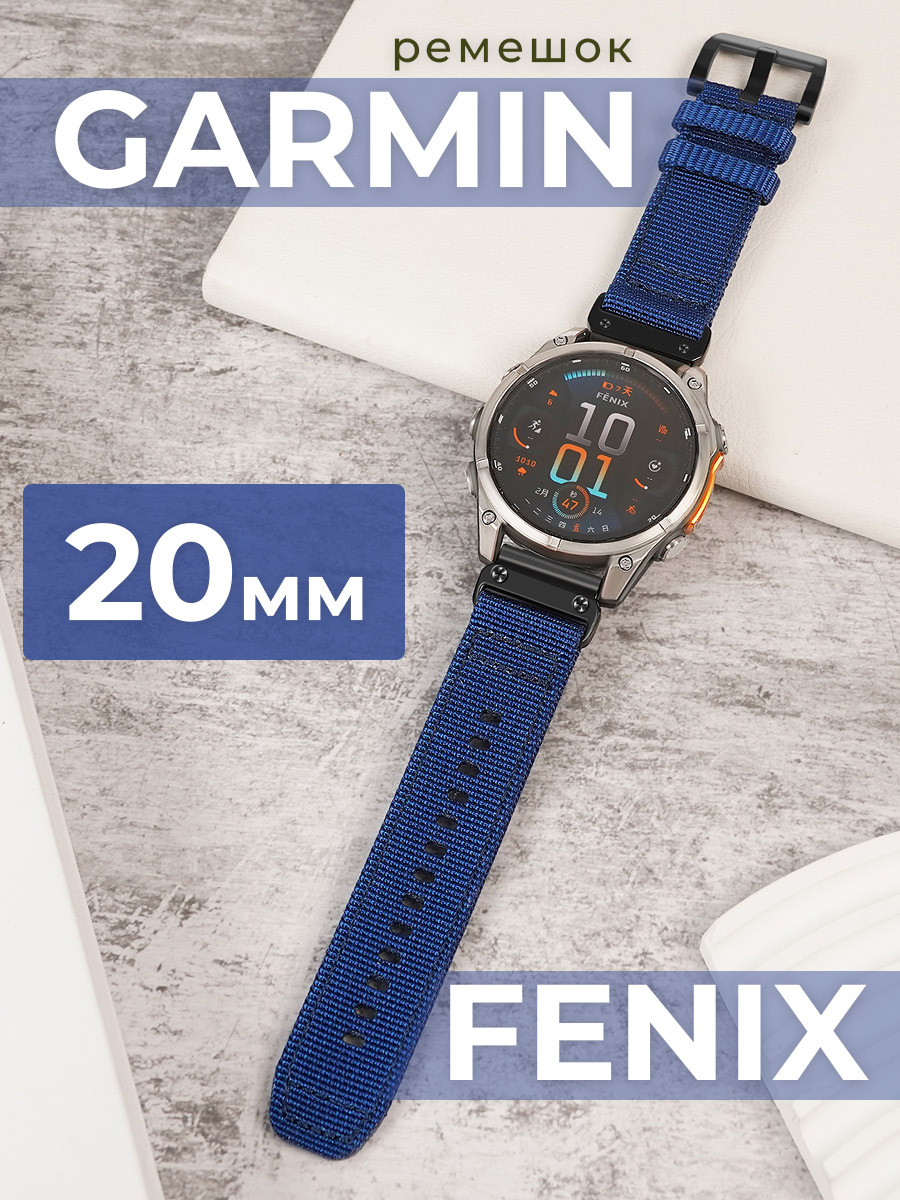 Нейлоновый ремешок для Garmin Fenix 8 / Fenix 7S / Epix Pro / Descent Mk3i, 20 мм, ночной синий