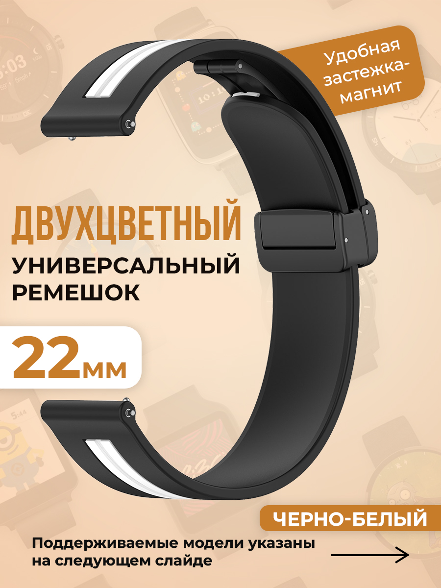 Двухцветный универсальный силиконовый ремешок 22 мм, черно-белый