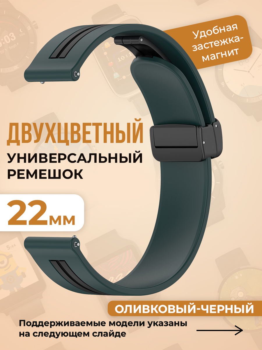 Двухцветный универсальный силиконовый ремешок 22 мм, оливковый-черный