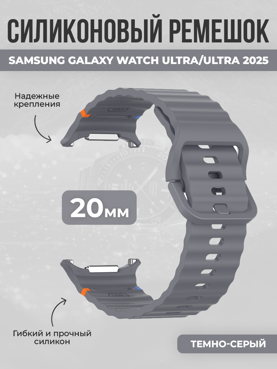 Силиконовый ремешок для Samsung Galaxy Watch Ultra/Ultra 2025, 47 мм, темно-серый
