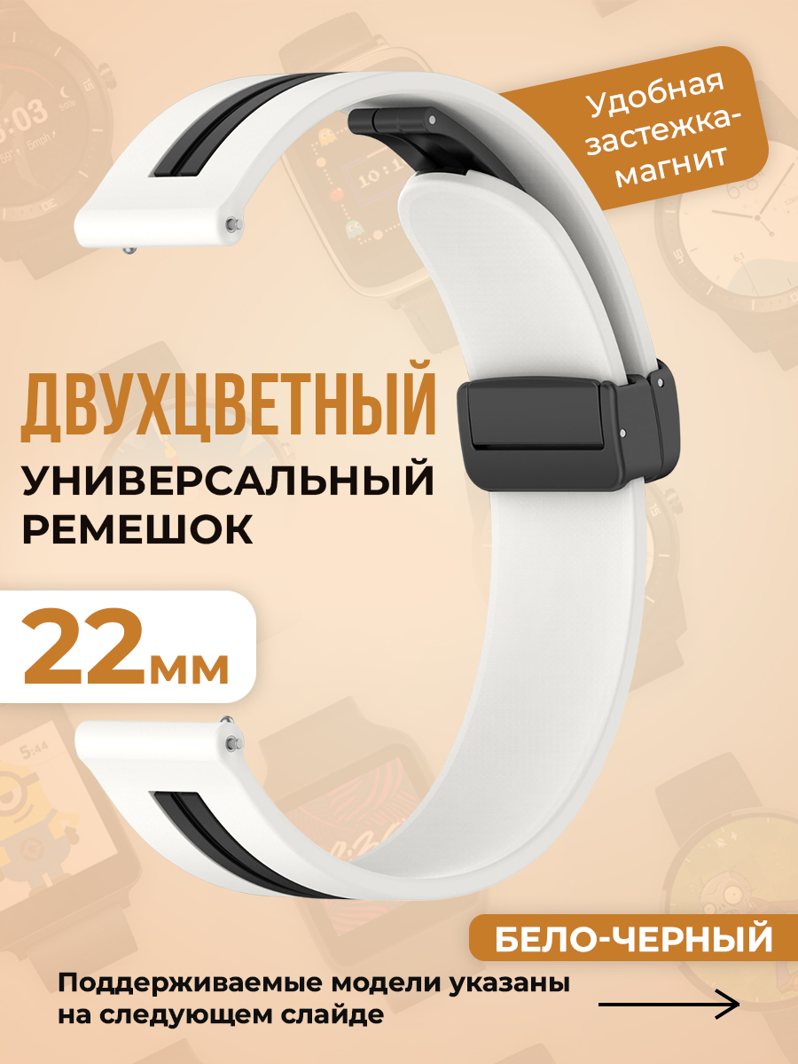 Двухцветный универсальный силиконовый ремешок 22 мм, бело-черный