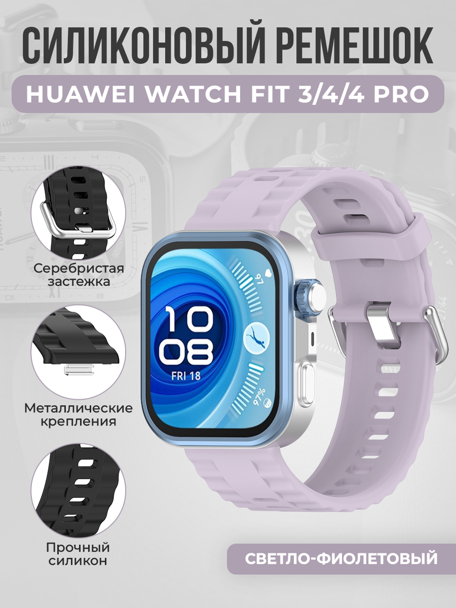 Силиконовый ремешок с серебристой застёжкой для Huawei Watch Fit 3/4/4 Pro, светло-фиолетовый