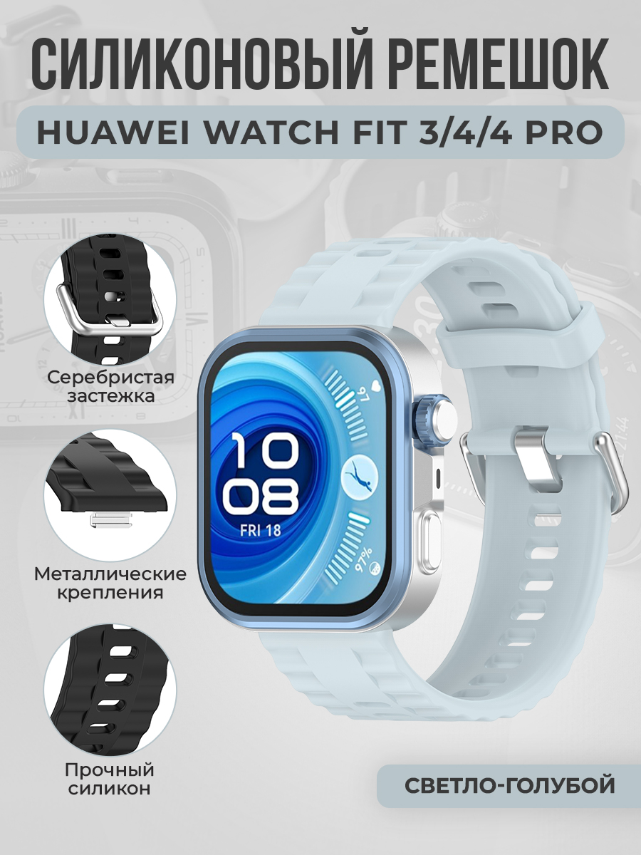 Силиконовый ремешок с серебристой застёжкой для Huawei Watch Fit 3/4/4 Pro, светло-голубой