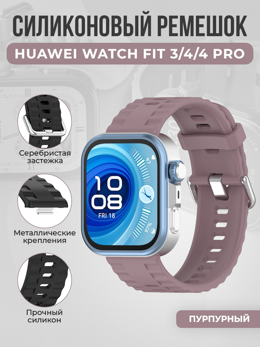 Силиконовый ремешок с серебристой застёжкой для Huawei Watch Fit 3/4/4 Pro, пурпурный