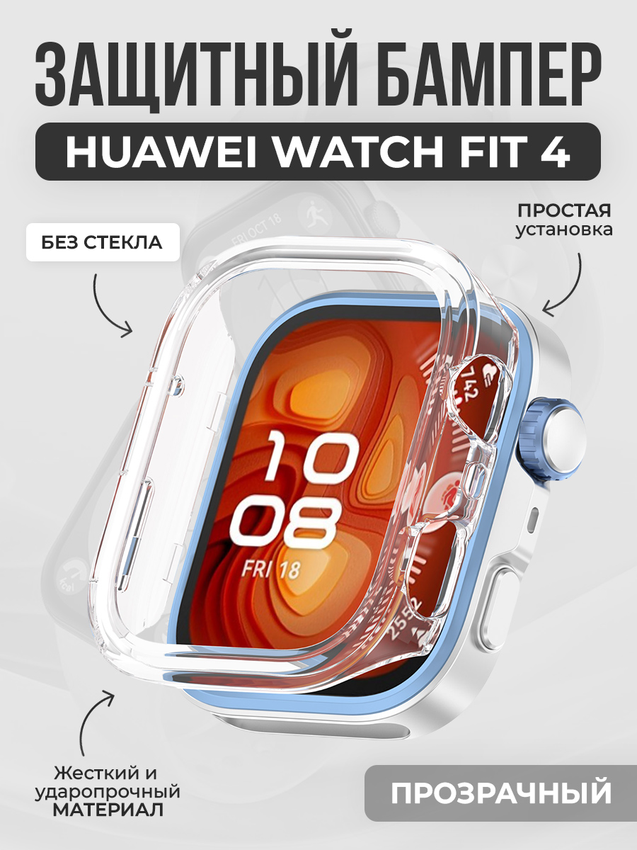 Жесткий защитный бампер для Huawei Watch Fit 4, прозрачный
