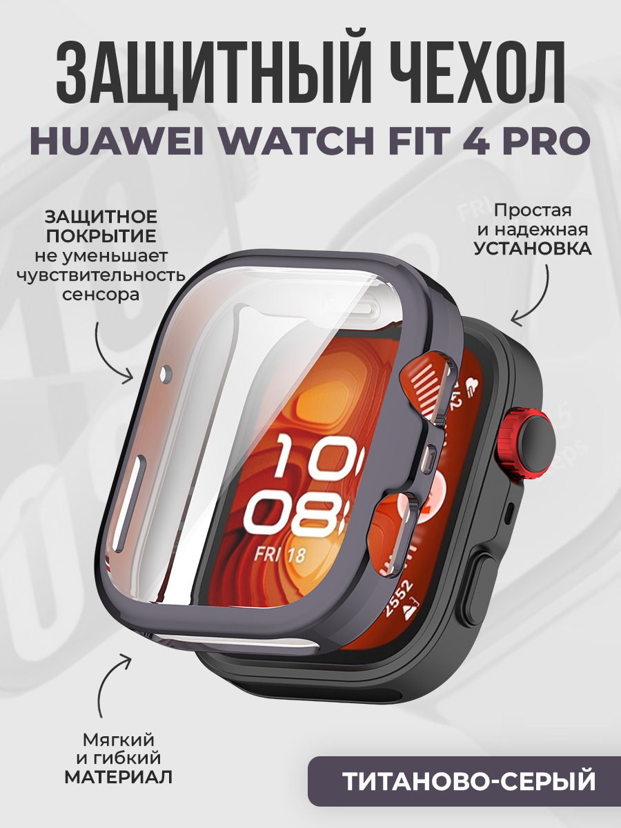 Мягкий чехол TPU для Huawei Watch Fit 4 Pro, титаново-серый