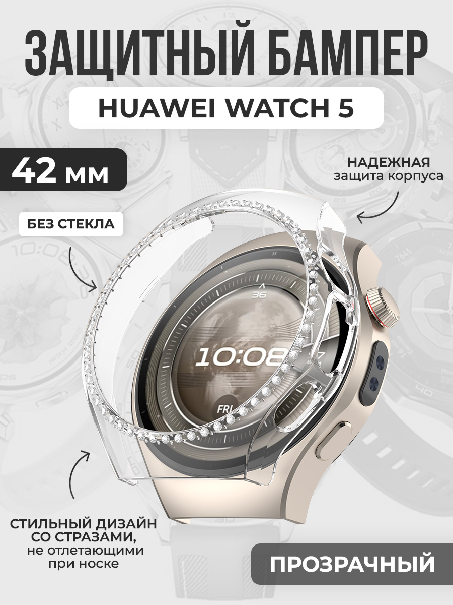 Жесткий защитный бампер со стразами для Huawei Watch 5, 42 мм, прозрачный