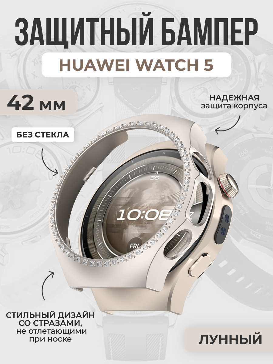 Жесткий защитный бампер со стразами для Huawei Watch 5, 42 мм, лунный
