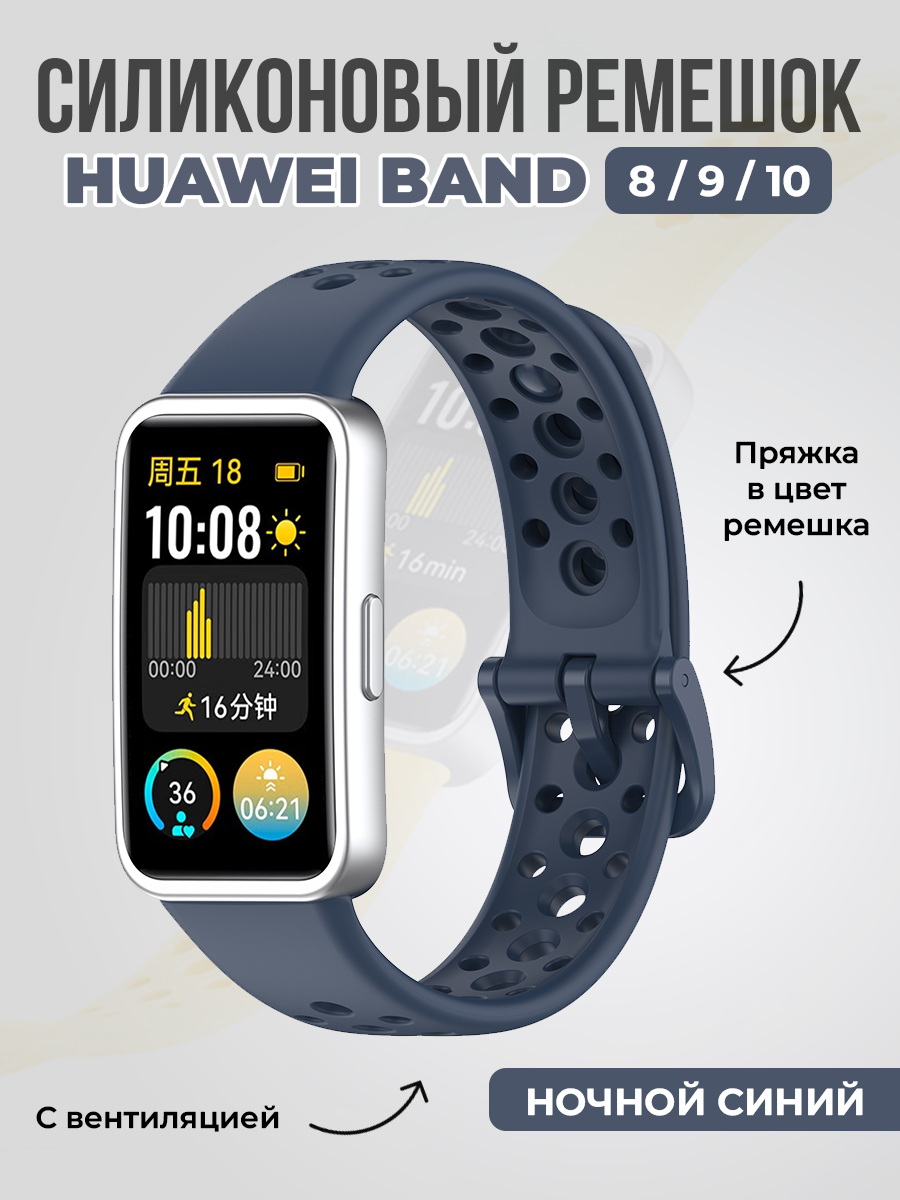 Силиконовый ремешок с вентиляцией для Huawei Band 8/9/10, ночной синий