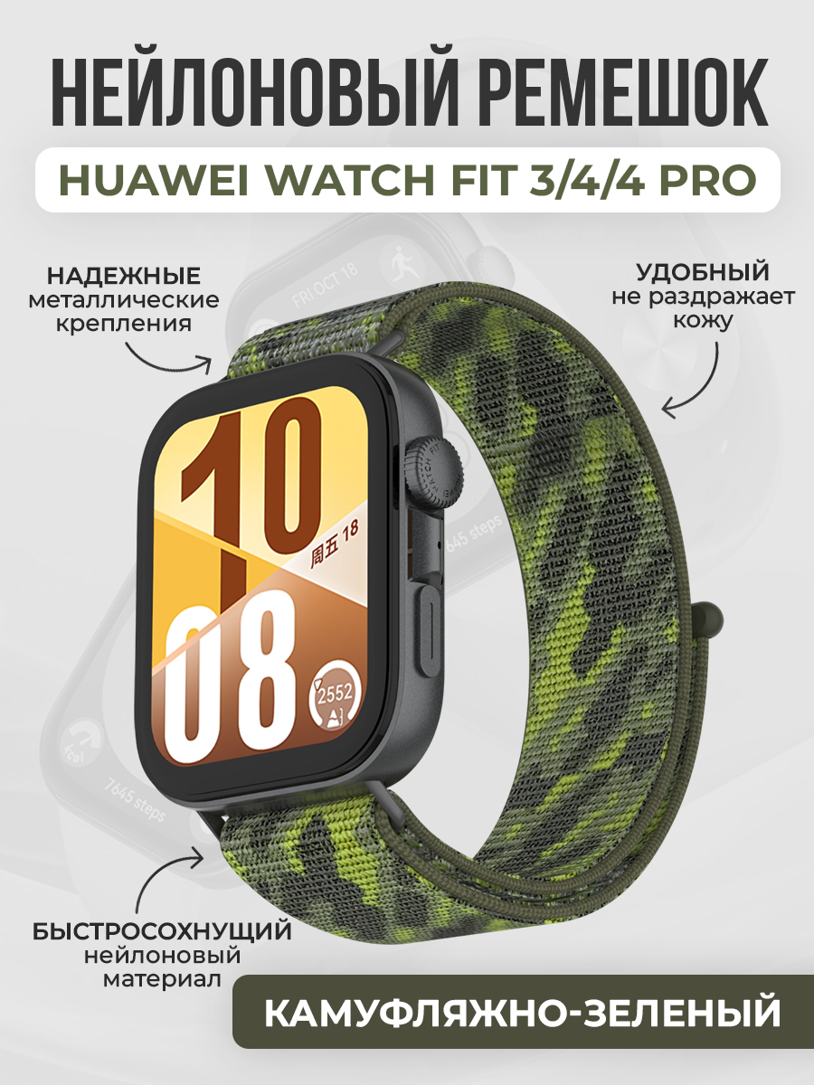 Нейлоновый ремешок для Huawei Watch Fit 3/4/4 Pro, камуфляжно-зеленый