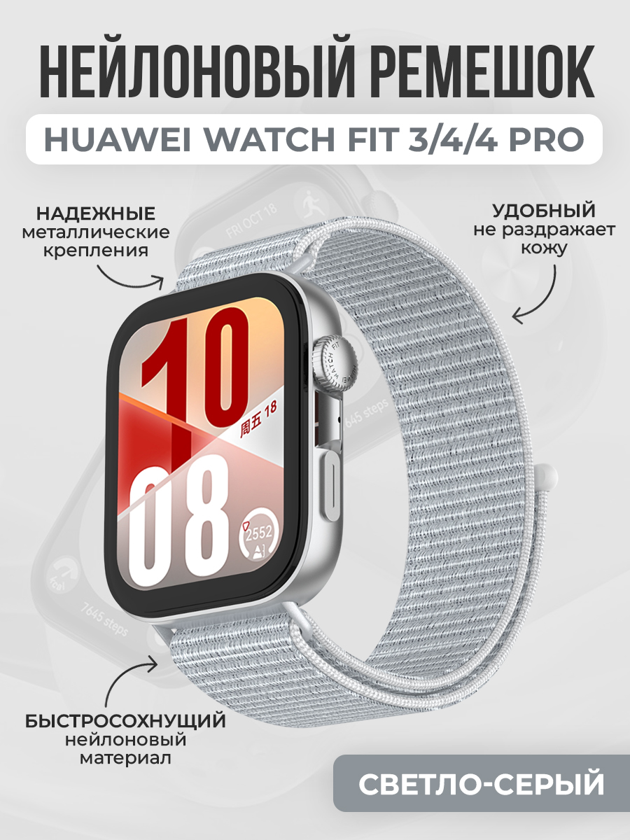 Нейлоновый ремешок для Huawei Watch Fit 3/4/4 Pro, светло-серый
