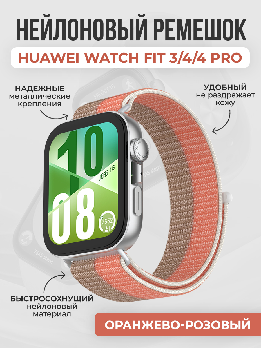 Нейлоновый ремешок для Huawei Watch Fit 3/4/4 Pro, оранжево-розовый