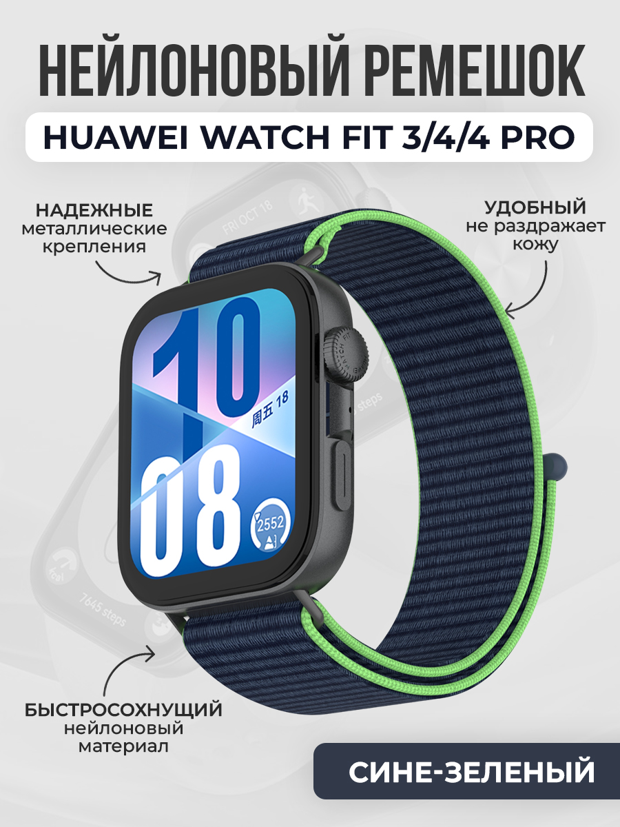 Нейлоновый ремешок для Huawei Watch Fit 3/4/4 Pro, сине-зеленый | Супер цены