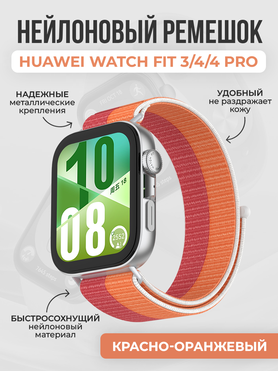 Нейлоновый ремешок для Huawei Watch Fit 3/4/4 Pro, красно-оранжевый