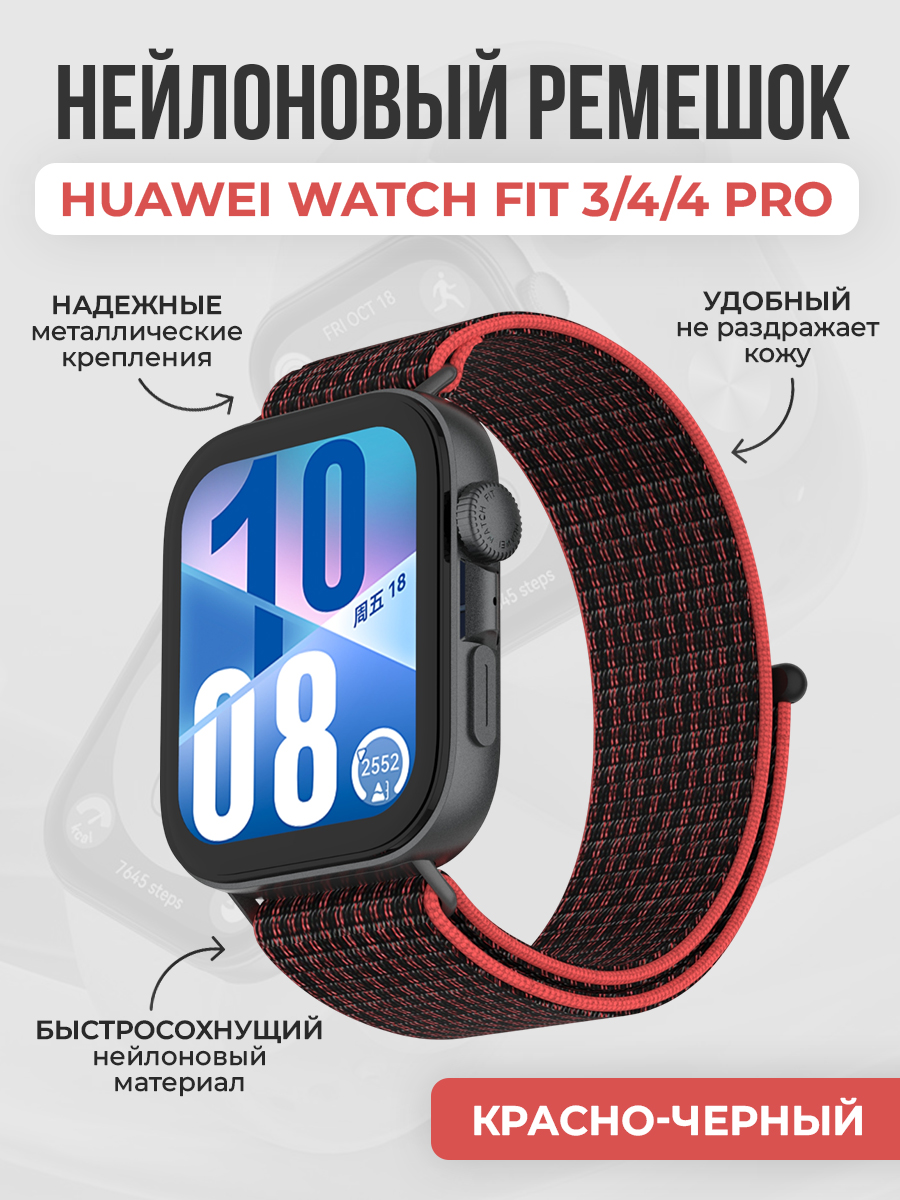 Нейлоновый ремешок для Huawei Watch Fit 3/4/4 Pro, красно-черный