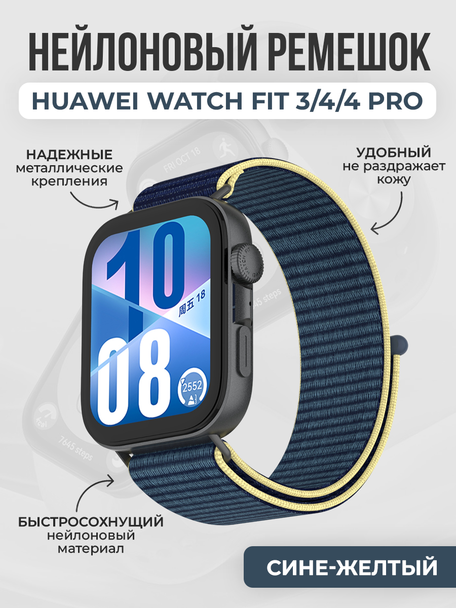 Нейлоновый ремешок для Huawei Watch Fit 3/4/4 Pro, сине-желтый