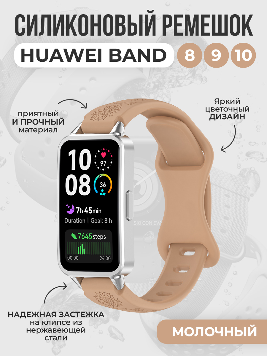 Силиконовый ремешок с рисунком для Huawei Band 8/9/10, молочный