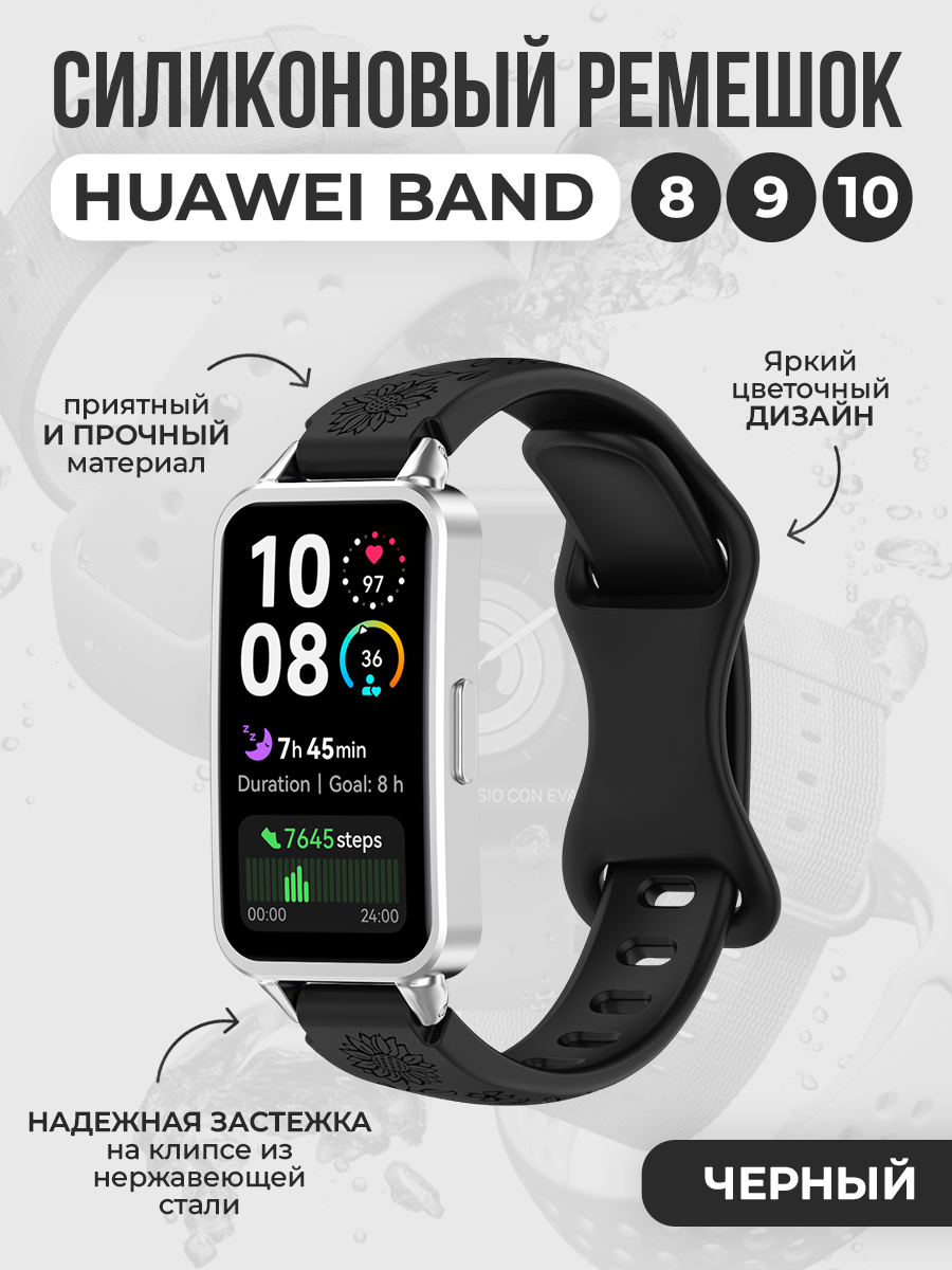 Силиконовый ремешок с рисунком для Huawei Band 8/9/10, черный