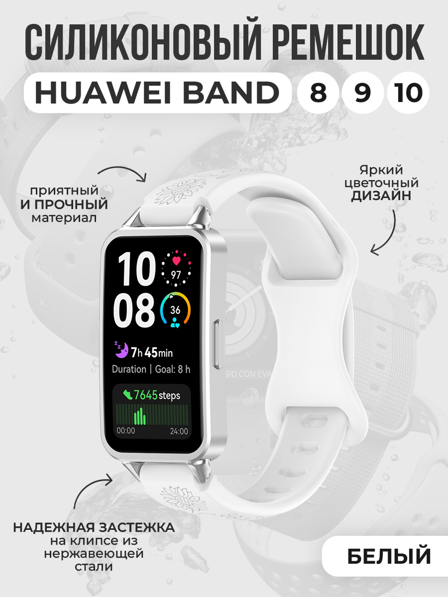 Силиконовый ремешок с рисунком для Huawei Band 8/9/10, белый