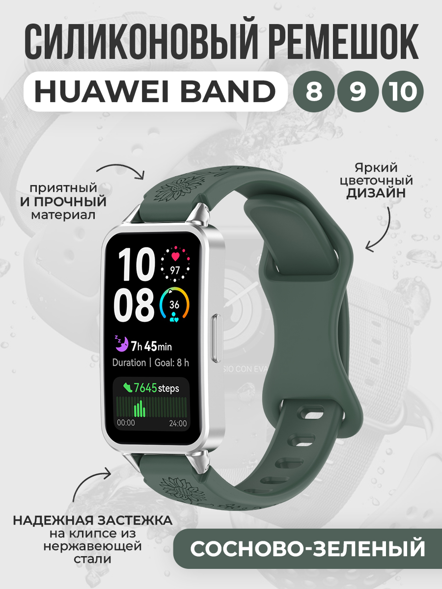 Силиконовый ремешок с рисунком для Huawei Band 8/9/10, сосново-зеленый